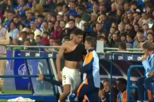 体育资讯04月24日讯 北京时间4月24日凌晨3:30,西甲第33轮,皇家马德里客场1-0赫塔费。下半场64分钟,贝林厄姆替补登场,摄像机拍到上场前队医为其肩部裹上了层层护具。