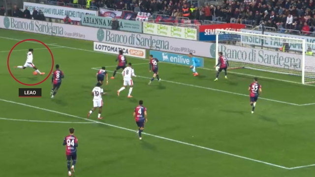 总体印象是,所有这些都是紧急情况下的产物,是身体适应性的自然反应。莱奥知道自己右大腿有问题,无法再靠速度决定比赛?于是他更多留在禁区,当得到好球时,试图更好地利用:本赛季,他处理球的质量比重增长了很多。对阵卡利亚里就是完美的例子。拉法在那场比赛中深受伤病影响,并将整场比赛浓缩在一个动作中:右脚停拉比奥特的助攻,左脚射门得分,这可不是他惯常的得分方式。莱奥几乎从未用一记强力、精准、纯射手式的左脚射门得分过。在他新的9号位生涯中,这是一个普斯卡什奖级别的小瞬间。